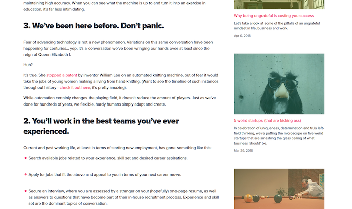 Some writers are more specialized in their field – for example, social media specialists or UX writers. Others (and these writers are prized) can fill a range of writing roles on any given day, moving seamlessly between blog posts and UX copy, between different voices and brands, between strategy and execution.